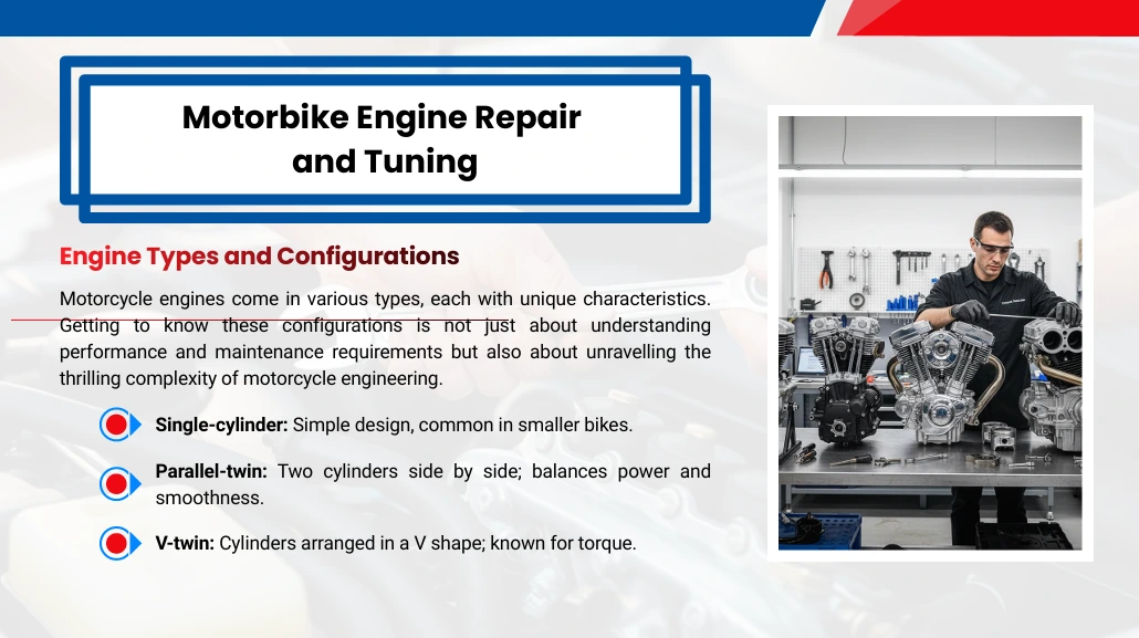 To broaden your skill set further, the car mechanic training course includes motorcycle maintenance and restoration, covering mechanical systems, electrical components, engine tuning, safety inspections, and restoration projects.