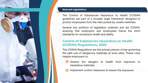 The detailed course on COSHH Clinical environments covers risk assessments and control measures, helping you understand how to identify and minimise exposure to hazardous substances, such as chemical disinfectants, medical gases, and biological agents. You’ll also gain insights into proper storage, handling procedures, and PPE usage, reducing the risk of skin irritation, chemical burns, and respiratory conditions.