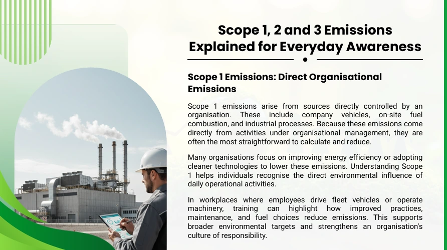 As you progress through this environmental awareness course online, you will learn how energy use, emissions, and everyday workplace activities contribute to environmental impact. Additionally, the course highlights how small operational and behavioural changes can significantly reduce carbon footprints and support long-term sustainability goals.