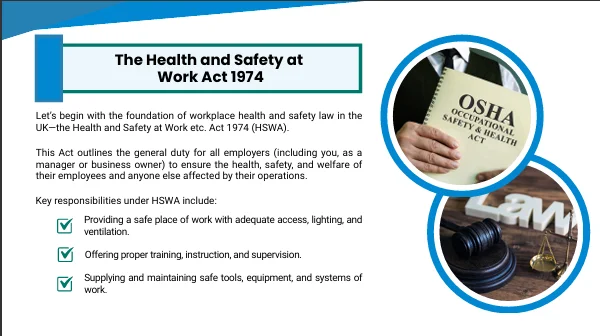 Whether you’re a team leader, manager, safety officer, or supervisor, this training covers everything from understanding health and safety responsibilities to embedding safety culture and applying practical management techniques. The course begins with the fundamentals, including why health and safety matters, legal duties of employers and employees, and key workplace regulations compliant with UK legislation.