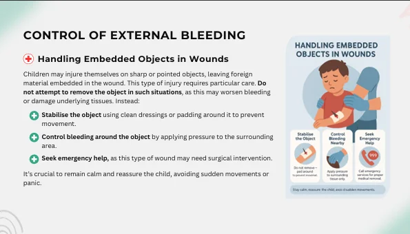 This paediatric first aid training covers essential life-saving techniques, including infant and child CPR, choking response, and recovery position. You’ll also learn how to handle bleeding, burns, allergic reactions, and common childhood illnesses such as seizures, infections, and dehydration. The course goes beyond emergencies, providing valuable advice on childproofing, accident prevention, and safety strategies for both home and outdoor environments.