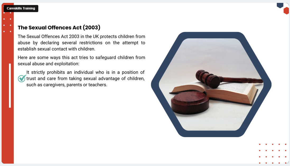 Throughout the safeguarding children course, you’ll explore key areas such as the types and signs of abuse, the legal frameworks in the UK, and how to apply the six principles of safeguarding in real-world settings. You’ll also learn how social and emotional development plays a role in recognising risk, and how child protection has evolved over time. Whether you’re managing safeguarding in a setting or responding to a concern, this course gives you the confidence and structure to act effectively.