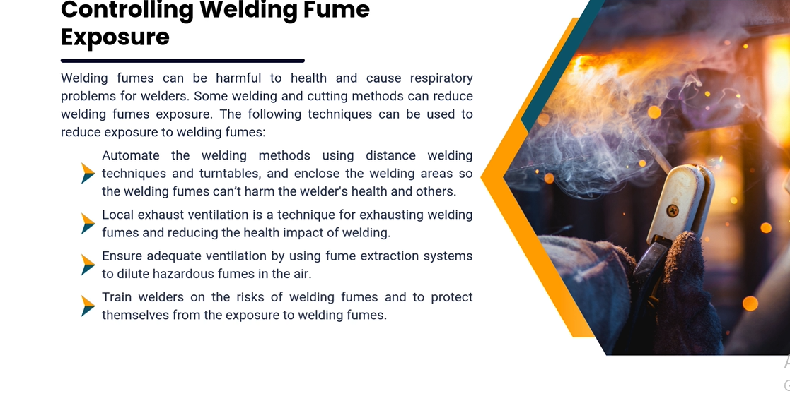 Explore methods to control health hazards in welding.