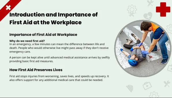 With a focus on confidence, clarity, and calm decision-making, workplace first aid training also includes helpful reminders and tips for maintaining readiness in real-life scenarios. Essential Safety Training provides first aid at work courses that are accessible on any device.  With our 14-day money-back guarantee and a Free CPD certificate upon completion, this flexible online workplace first aid course is your opportunity to take responsibility and prepare for the unexpected. Enrol today and gain the confidence to act on emergencies when it matters most.